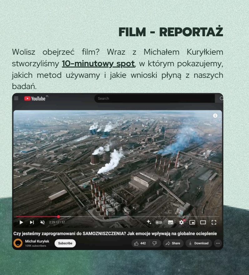 Właśnie dlatego powstał ten raport – by w przystępny, graficzny sposób przedstawić wyniki naszych badań. Zapraszamy do jego lektury – znajdziecie w nim konkretne wnioski, dane i narzędzia, które mogą pomóc lepiej zrozumieć, czym są emocje klimatyczne i jak wpływają na nasze działania.